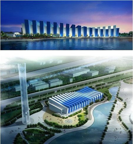 該館主體造型采用雙色螺旋流動造型,主體建筑白色和藍色相間,既巧妙地隱喻了廣州“云山珠水”的城市地理特征,又是對主體育場“飄帶”曲線的延續。同時通過相互穿插流動造型,結合建筑朝向,很好的滿足了建筑內部空間高度、采光通風、建筑節能以及合理布置設備管道的需求。