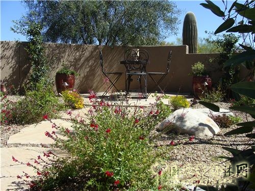 植物點綴干燥庭院