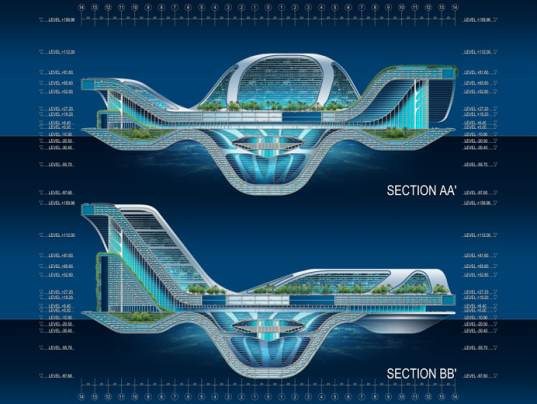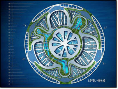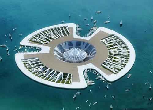 Lilypad人工島嶼將漂泊在赤道兩極的海洋之中,大約可容納5萬人正常生活。它是一個兩棲城市,也可以看做是一個巨大的船只。仿生學無疑是這個設計背后的靈感,被設計成水蓮花的Lilupad是被設定為一個漂流在海上沒有排放污染的城市。 通過許多技術(太陽能、風能、潮汐能、生物技術),它設想整個項目不僅可以制造自己的能量,而且可以在大氣里處理二氧化碳并且把它吸收進它的二氧化鈦的表皮。