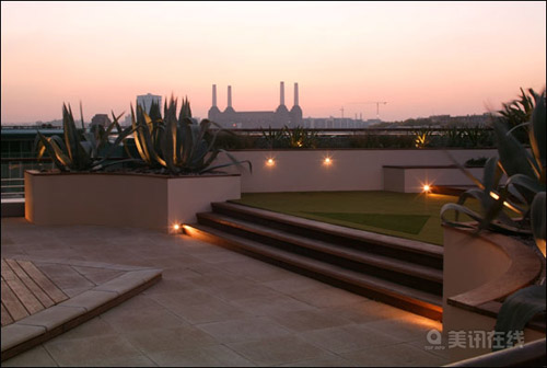 圣喬治碼頭屋頂花園位于倫敦西南。占地220平方米,在建筑的第7層。花園的布局充分利用了建筑的弧形輪廓、紋理和顏色。用低矮的植物將視線進(jìn)行了一定的阻擋,和背景形成強(qiáng)烈的對比。