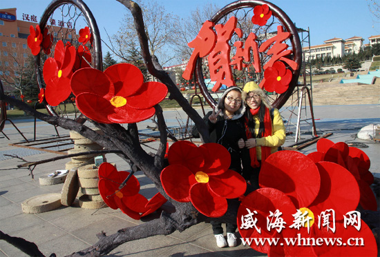 威海城市園林景觀“紅梅迎春”亮相人民廣場(chǎng)