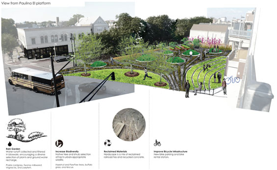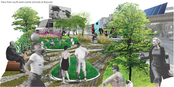 這里敞開的公共空間會吸引許從周圍鄰近地區以及林肯大街商業區的購物者,提供給當地居民和購物者一個良好的聚集場所。強大的吸引力也將有助于TOD(定向運輸發展)項目在幾塊空地和公園四分之一未開發區域的發展。在我們研究總體規劃期間,湖景地區當地居民將獲得更多公共空間列為他們對周邊環境的首要需求,比安全、停車、可選擇的購物場所以及其他事項更重要。在把Paulina交通站轉換成為重要的廣場和整個城市中心的過程中,廣場和綠化空間回應了人們的渴望。