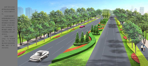 在5.1公里長的興旺大道的綠化種植設計中,共分為兩個標準路段,通過路口節點-主題性種植模塊-景觀樹陣-水波形修剪灌木這些共性設計元素,將每個標準路段作植物品種的變化。統一的綠色底蘊、協調的植物景觀,形成了綠色的生態走廊,保證了整個道路景觀的完整性和連續性。