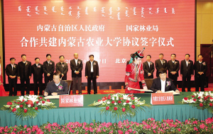 近日,國家林業局與內蒙古自治區政府在北京簽署協議,合作共建內蒙古農業大學,相約共同努力,加強合作,突出學校辦學特色,力爭把內蒙古農業大學建設成為祖國西部高水平大學,為服務現代林業建設和內蒙古自治區“富民強區”提供更好的人才、智力和科技支持。