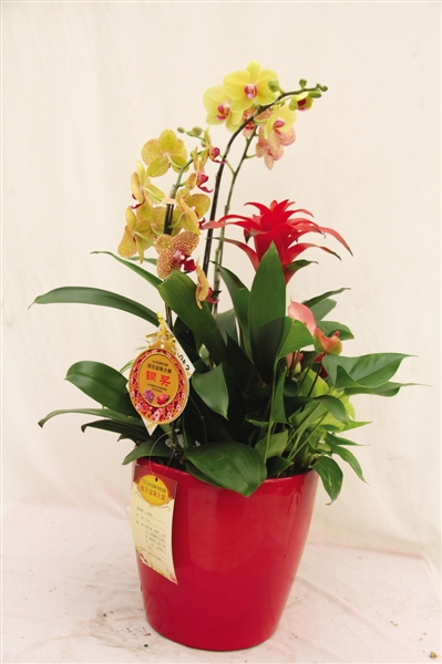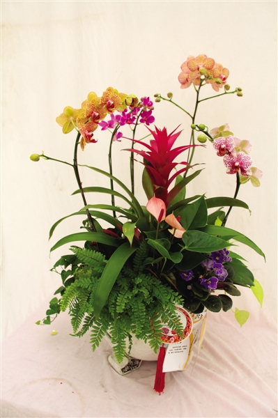 福滿乾坤(由蝴蝶蘭、鳳梨、粉冠軍、報春、蕨類、常春藤組成)