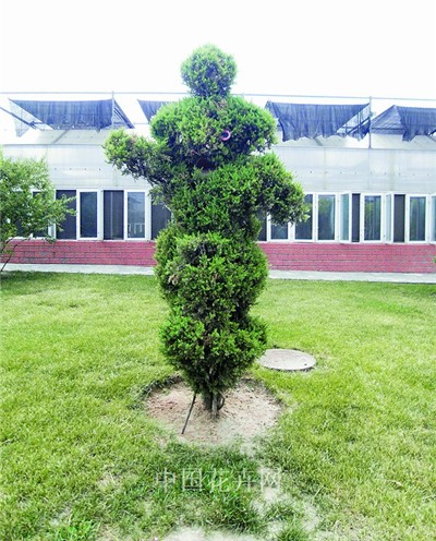 在北京世界花卉大觀園的綠地上,用檜柏造型的小熊,呈站立姿勢,頭頂園球,還原了馬戲團里的小熊賣力表演的情景。檜柏四季常綠,生長較慢,十分適于動物造型。