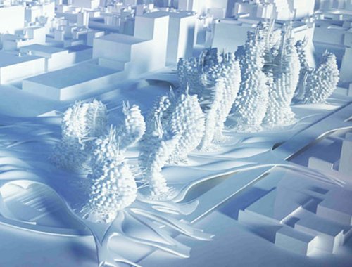Chimera設計團隊認為具有扭曲網架的埃里克托貝爾的曼哈頓摩天大樓農場,會使人想起曼加勒市線束從各種渠道借鑒的仿生原則。高層建筑的結構是模仿紅樹林,螺旋式上升植物生長模式,以及自然生態系統的相互作用。