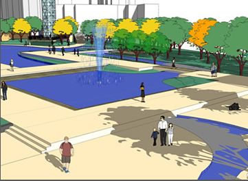 南側是聚集人氣的城市廣場,大樹下的一塊鋪裝場地,供人下棋的桌凳,樹蔭下的垂釣臺,舒適的露天咖啡屋,可以使居住區充滿生機并產生一種凝聚感,形成鄰里相互交流的良好場所。