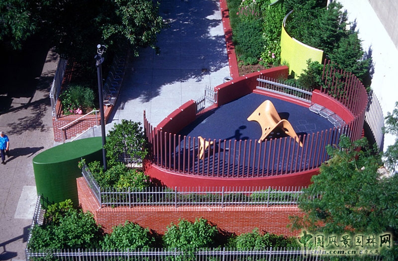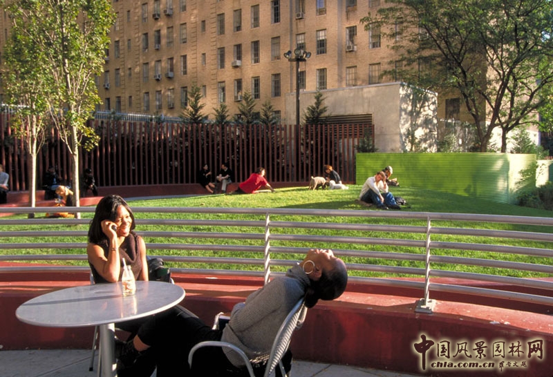 中國風(fēng)景園林網(wǎng)訊 位于紐約市曼哈頓西區(qū)的Balsley公園,曾經(jīng)是以西非爾德廣場聞名,因年久失修成了一個貧瘠無生物的廣場,現(xiàn)在已轉(zhuǎn)變成一個特別受歡迎的公園。紐約著名景觀設(shè)計公司Thomas Balsley Associates(TBA)承擔(dān)設(shè)計,建造成一個全新的公園吸引廣泛的青睞者,空間包括花壇、幼兒游樂區(qū)、有遮陽的座椅、陽光普照的草坪、咖啡座和一個每周兩天的綠色購物市場,中間通過簡潔的交通小道連接。新的設(shè)計為附近社區(qū)樹立了一個新面孔。
