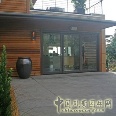 庭院位于美國華盛頓州西雅圖市的西北部,造價8萬到10萬美元。庭院位居高處,卻是一個相對隱蔽的居住空間。設計的主要元素是與背景墻顏色一致的17層混凝土階梯、混凝土平臺、天臺、矮景觀燈、雪松綠籬、種植當地植物的容器等。