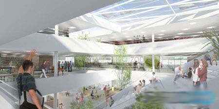 此外,寬大的中庭和中央廣場成為學校的焦點,也展現了空間設計的質量。媒體中心、咖啡館、廣場等為師生提供了會面和交流的場所,學習之余可在此放松,同時舉行各類活動如學生音樂會和劇場表演等。