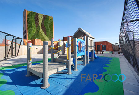 底層半開放的休閑空間以及第六層的兒童游樂空間等總計為1194平方米。底層的雙層公寓都有私人花園,上層的公寓則有私人陽臺。該項目符合可持續(xù)性房屋法規(guī)的三級標(biāo)準(zhǔn),并利用生態(tài)鍋爐來采暖,實現(xiàn)了20%的可再生能源目標(biāo)。