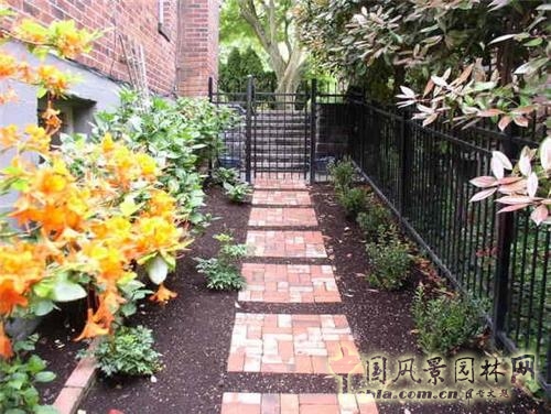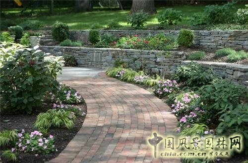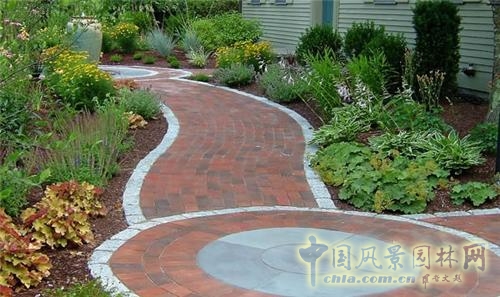 中國風景園林網訊 磚塊式人行道是田園風格庭院的特征,并且粘土磚可以釋放出古典肅靜的氣息。依據要設計人行道的寬度、形狀和決定想要花紋圖案,可以設計出正式和隨意的庭院小道。同時,磚塊也可以和混凝土、石板及鵝卵石結合鋪設出一條獨特的庭院小道。