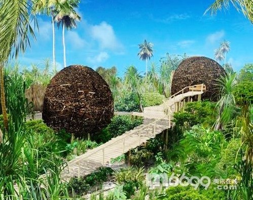 Six Senses Spa水療中心由四個球形的藤編巢狀護理間組成