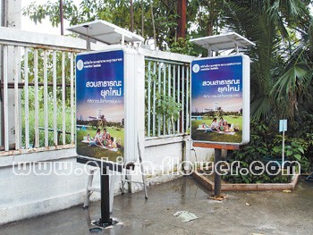 ▲這是一款太陽能廣告燈箱,采用太陽能組件作為獨(dú)立供電電源,發(fā)光亮度高,均勻無色差。廣告專用面板在透光透亮的同時(shí),還可不斷變換生動的宣傳畫面。