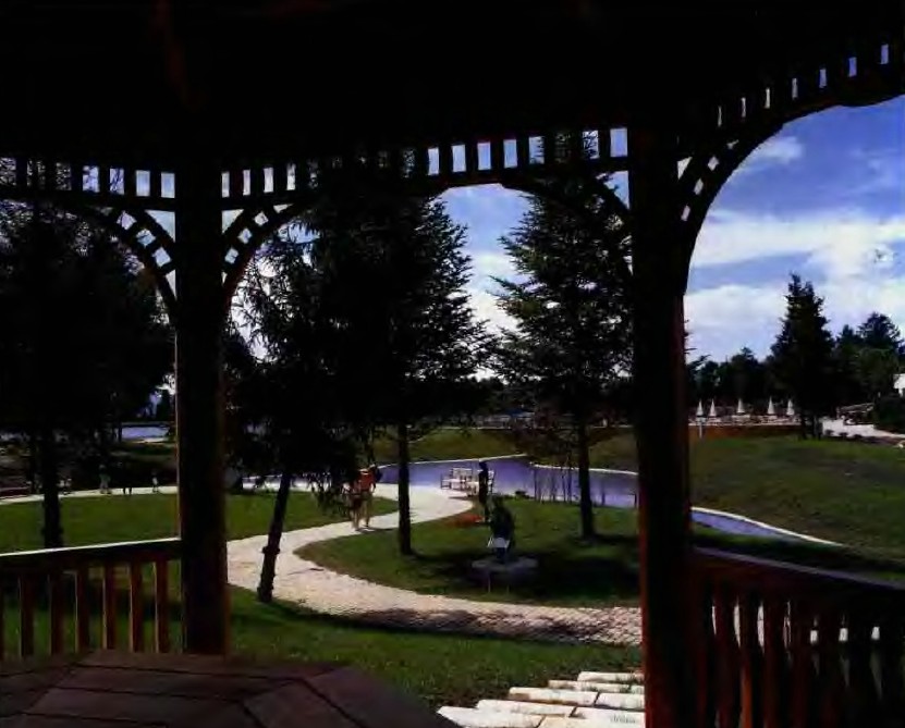 表現力量型的雕塑多設置在緩坡草坪和強烈照射的陽光下,與其相反,那些表現溫柔感的女性雕塑作品多配置在山地林中,光線較柔和的場所。十二支小型雕塑設置在迷宮中,作為出入口的標志,也增加了一些娛樂的氣氛。