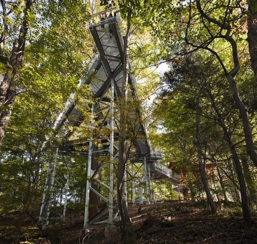 賓夕法尼亞大學莫里斯植物園是一個新的現代樹屋的所在地,樹屋距離森林地面50英尺。樹上探險項目是一條450英尺長的伸展的通道,其間懸掛了一個遮網,可以讓游客俯瞰下面的森林。