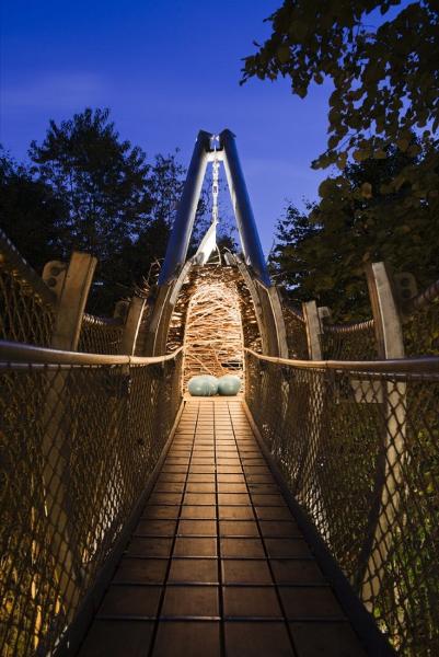 這個由Metcalfe建筑與設計事務所做的設計的最大特點是在中央有一個現代小棚——人造鳥巢,還有成角度的通道和一個可以讓游客在森林上方放松休閑的遮網。這個項目作為公共空間能促進社會交流與教育,并采用了現代設計標準,因此獲得了2010年費城最佳建筑獎。我們非常樂意在賓夕法尼亞這片森林上方的遮網上小睡一會兒。而且,我們也毫不掩飾我們對現代樹屋設計的熱情。