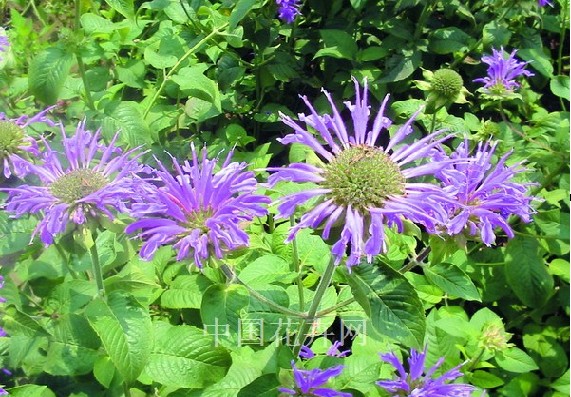 美國薄荷唇形科美國薄荷屬多年生宿根花卉,株形直立,花期6月至8月,花大色艷,有粉、紅、紫等色,全株具薄荷清香,觀賞性強。其生性強健、喜陽、少病蟲害,為體量偏大的宿根花卉,屋頂綠化中沿路種植成花帶效果突出。
