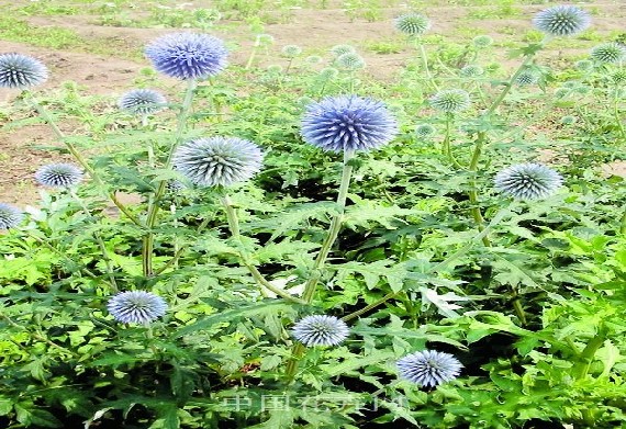 藍刺頭菊科藍刺頭屬多年生宿根花卉,莖直立,具縱溝棱,被白色綿毛,葉互生,邊緣具不規則刺齒或三角形刺齒。藍刺頭生性強健,是強陽性植物,耐旱耐貧瘠,株高可達1米。其花形和花色頗為獨特,花期在6月,很多頭狀花序密生在一處,形成圓球形的復頭狀花序,直徑可達4厘米。當全部花開放后,一個艷麗的藍紫色花球從莖的頂端伸出,非常惹眼。屋頂綠化中適于種植在綠地邊緣作背景。