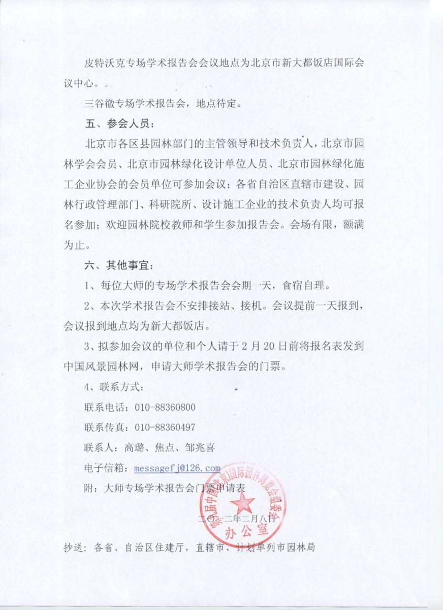 3、擬參加會議的單位和個人請于2月20日前將報名表發到中國風景園林網,申請大師學術報告會的門票。