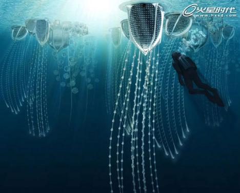有些水下城市的目標(biāo)不是看上去像可以下沉的現(xiàn)代大都市,而是像海洋生態(tài)系統(tǒng)的組成部分。以水母為靈感給澳大利亞量身打造的海洋城概念“Syph”不是“建筑物”,而是“有機(jī)物”,每個(gè)“有機(jī)物”都有特定任務(wù),比如制造食物或?yàn)榫用裉峁┳∷?ldquo;Syph”概念是奧雅納生物技術(shù)公司(Arup Biometrics)在“當(dāng)下+何時(shí)-澳大利亞都市主義展”(NOW + WHEN Australian Urbanism)競賽中提出的,此設(shè)計(jì)具有可與周圍環(huán)境融為一體的流動、雅致的結(jié)構(gòu)。