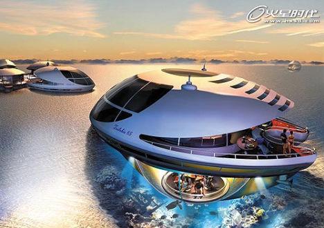 無論我們將來是因新奇還是生存需要必須在海底生活,并不是每個(gè)人都渴望擠進(jìn)人口眾多的水下摩天大樓或住宅群。有些財(cái)大氣粗、出手闊綽的人可能會選擇仿造現(xiàn)代游艇而建的半潛式寓所。圓形“Trilobis 65”水下家園有一個(gè)觀景臺,可以提供360度視野。它的造價(jià)在400萬至500萬美元之間。