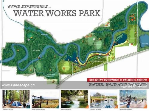 這一競賽的舉辦也旨在尋求實現水景公園生態和休閑功能的挑戰的解決方案。佐佐木的獲獎方案(在RDG及AES公司的共同協作下完成的項目方案)由兩個獨立但是互為補充的部分構成了水景公園:類自然的部分和類人工的部分。類自然的部分通過騎馬及遠足等活動將此部分融入到整個公園中去;類人工的部分則是公園中的活躍中心,提供了更多類型的活動。
