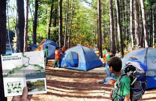 類人工區的中心景觀是一座休閑性的水道,里面設置了站立式步道板,考慮到場地收集、凈化飲用水水源的功能,將步道板相連以作展示說明之用。