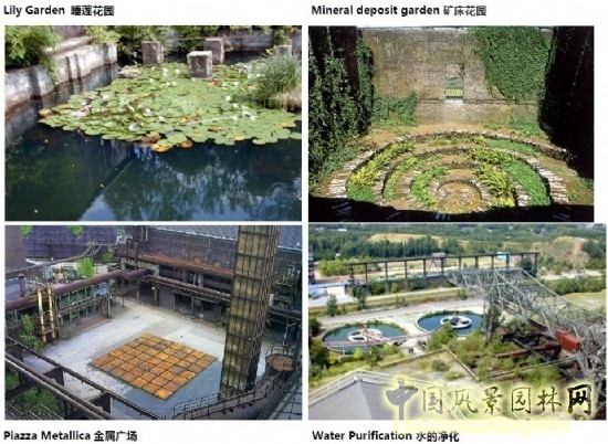 這里曾經是德國最重要工業基地的魯爾區,20世紀90年代,著名景觀設計大師彼得·拉茨進行了一項對歐洲乃至世界上都產生重大影響的項目──國際建筑展埃姆舍公園(IBAEmscherpark)。它的最大特色是巧妙地將舊有的工業區改建成集合公眾休閑、娛樂、教育文化的場所,并且仍基本保留原有的工業設施,又創造了一種獨特的工業景觀,賦予舊的工業基地新的生機。杜伊斯堡風景公園(Landschafts park Duisburg Nord)是其中最引人注目的公園之一。