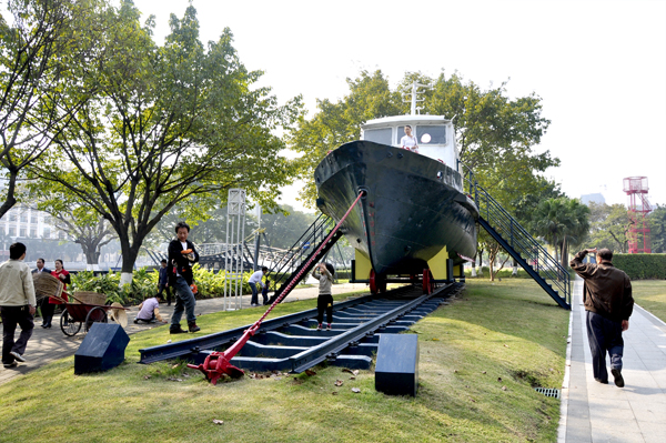 鐵軌上的輪船成為今日一景