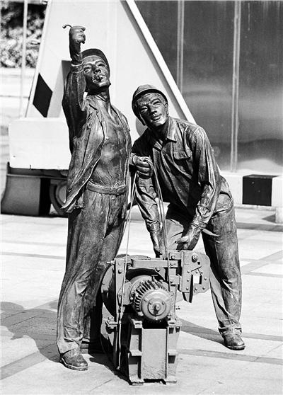 再現當年工人風貌的雕塑