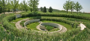 設計包括在花卉節展示未來人居環境臨時用作的汽車停車場、中心先前的軍用壁壘向運動場的轉變、內部設置停車場的大玻璃溫室和寬闊的牧場以及積留雨水的螺旋景觀。