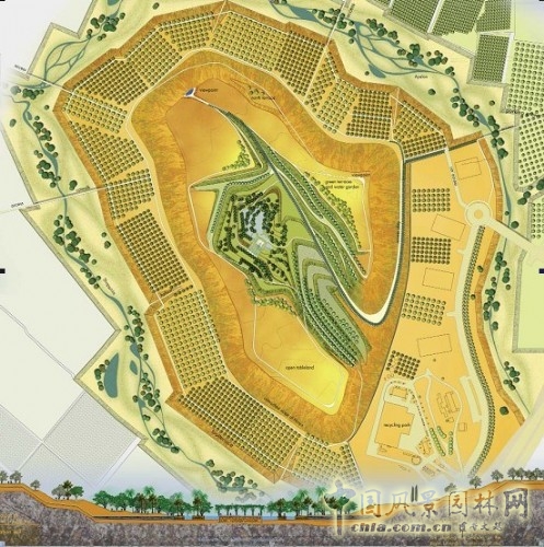 遠(yuǎn)遠(yuǎn)望去,Hiriya就是寬闊的Ayalon平原中間的“神秘山”,是維夫南部一個(gè)清晰可見的地理標(biāo)志。從空中俯瞰映入眼簾的,不僅是保持著它顯著的側(cè)面剪影的山體,而且還有轉(zhuǎn)變成了一道美麗的風(fēng)景線的城市公園,這是一個(gè)帶著地中海氣息的公共空間,在公園內(nèi)部的核心部位,噴泉是自然的象征。