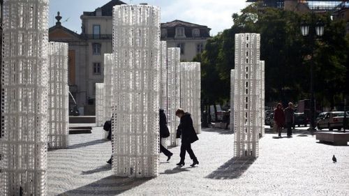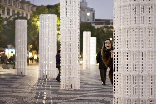 這是一個臨時安置在葡萄牙里斯本廣場上的圣誕裝置----“冰樹”,可以在夜晚發(fā)出光亮,并影響和改變廣場上行人的路徑。廣場因為這片樹林,有了一個新的景觀和環(huán)境。材料是具有透光性的聚丙烯塑料,并被加工出許多孔洞,在白天和夜晚,這些冰樹們,都演奏出讓人驚訝的陰影和景觀。內(nèi)部的光源是LED燈,白色的光芒創(chuàng)造出一個有趣的圣誕氛圍。