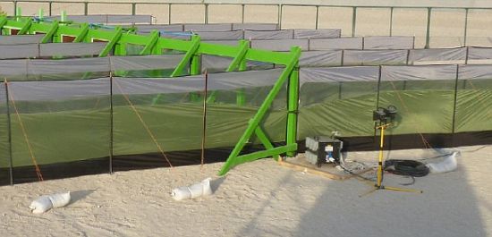 炎熱的沙漠空氣會蒸發夜間形成的地表水,但巧妙地放置樹籬可以將它們在逃入空中之前冷卻下來,從而使這個溫室保持一個適合植物生長的理想溫度。樹籬制造的較冷的濕氣在這個溫室周圍流動,然后進入含有從沙地深處抽上來的冷水的冷管中,再次被冷凝。這將為溫室里的所有植物源源不斷地提供生長所需要的潮濕空氣。