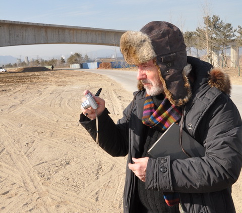 我由于要為大師準備其他文案,沒去現場陪同。下午的豐臺現場勘察更是出乎所有人意料。聽現場陪同的人員講,沒想到拉茨先生如此認真仔細。兩點到的現場,他就一直在寒風徹骨、黃土飛揚彌漫的現場走來走去,仔細勘察,不放過每一個細節。周圍的陪同人員都冷了,累了,倦了,他還在不厭其煩地詢問著每一個細節、每一組數據。一直到將近晚上7點,天都黑了,他才帶著滿腦子的疑問,戀戀不舍地離開了豐臺現場。