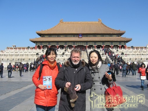 25日上午,我陪拉茨去故宮參觀。在故宮里,吸引拉茨的不是那些琳瑯滿目的珍寶,而是一座座氣勢宏偉的建筑群和園林景觀。拉茨仔細看著一個個建筑群的結構,不時發(fā)出贊嘆。腳下的臺階和石材也令他著迷。他不時告訴我臺階的坡度走向,詢問腳下的石頭材質。蒼天的古樹令他駐足良久。當我告訴他這些樹木的拉丁學名時,他非常興奮,贊嘆這些古樹蒼松營造出的大氣磅礴,曲徑通幽的園林景觀。