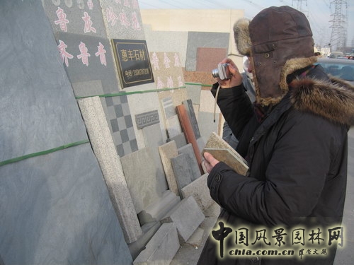 由于這次拉茨花園的設計中需要用到大量的石材元素,拉茨對于石材的選擇非常慎重,剛到第一天他就提出要去石材市場看看,了解一下當地石材的主要種類。25日下午,一番周折,我們已置身于北京郊區(qū)的石材市場。