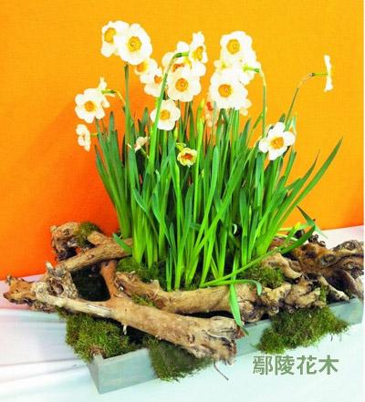 最常見的水仙花只要稍加設(shè)計,哪怕只是用枯樹枝和青苔裝飾,都立刻凸顯出別樣的山野風(fēng)情