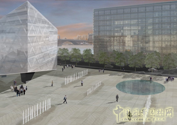 項目位于丹麥新海港和哥本哈根舊城區之間,是建筑"水晶體"下的一個城市廣場"云/水晶之下"。SLA景觀設計事務所應用嫻熟的城市廣場設計技術,設計了這塊城市新廣場,建成于2011年。