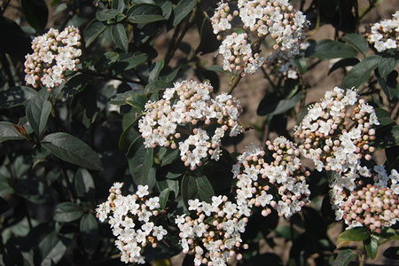 上海辰山植物園為豐富植物種類,從國外引進眾多莢蒾屬植物園林新品,園內種有‘紫葉’地中海莢蒾、‘大葉’地中海莢蒾、‘杰明球’球冠莢蒾、‘粉美人’雪球莢蒾、‘伊夫.普萊斯’棉毛海莢蒾等,形成一派花團錦簇、趣味盎然的春日美景。
