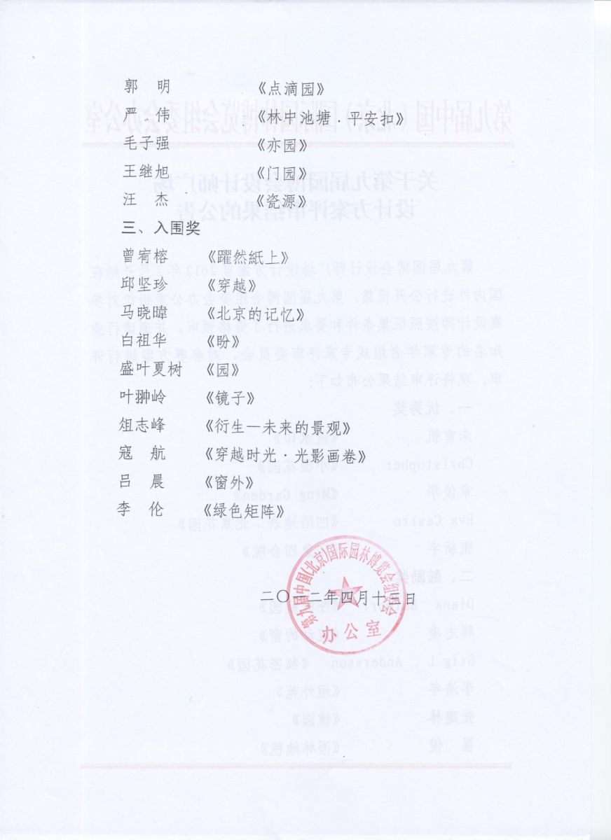 《關于第九屆園博會設計師廣場設計方案評審結果的公告》 原件2