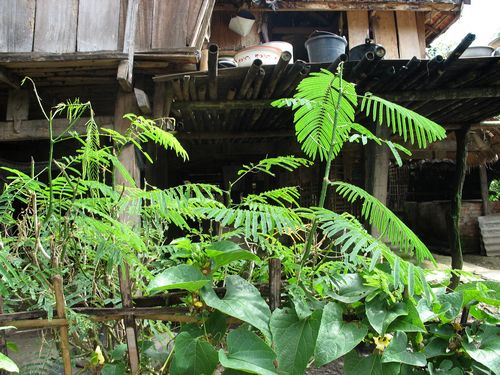 庭院在西雙版納地區(qū)少數(shù)民族生活中作為一種傳統(tǒng)的混農(nóng)林生態(tài)系統(tǒng),具有悠久的歷史。當(dāng)?shù)氐纳贁?shù)民族在生產(chǎn)勞作的過程中有意識地將一些有用的野生植物的種子、幼苗采集引入到庭院中栽培,加以管理,保存了豐富的植物物種。羽葉金合歡[臭菜,Acaciapennata(Linn.)Willd]是西雙版納及鄰近地區(qū)少數(shù)民族普遍栽培的一種野生蔬菜,其栽培種廣泛種植于庭院、綠籬、田地等生態(tài)系統(tǒng)中,栽培歷史悠久。近年來該地區(qū)大量的森林砍伐,橡膠種植,對臭菜的自然居群破壞嚴(yán)重,極大地影響了野生臭菜的生存。
