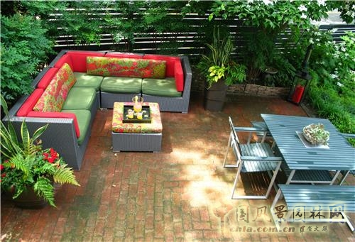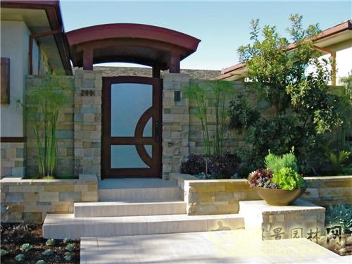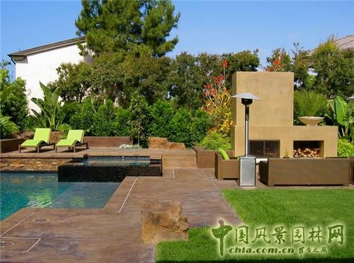 現代花園因其流線型的輪廓設計和光潔精致的外表而受人們喜愛,其整體的感覺是規整、結構性強。表現出在硬景和建筑上比植被的多,或者說是植物表現出硬景的物件化。選用的植物通常為綠色、形狀具可塑性。然后再加上一些很有色彩的墊子、容器或彩繪墻等。