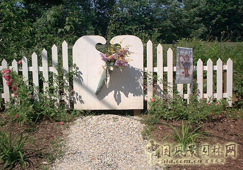 一條碎石道路通向白色籬笆門,吸引參觀者的眼球,但是這個(gè)門并非真的,它只是一個(gè)藝術(shù)品。