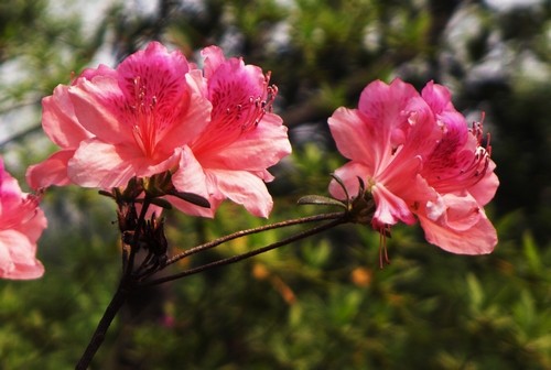 粉紅毛鵑,很常見的品種,在夕陽的映襯下,分外嬌艷、可愛