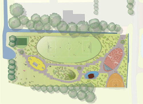 過去很多年中,這個公園一度管理不善。Bureau B+B景觀設計事務所重新定位了鹿苑,將一個植被茂盛的陡峭山脊融入了一個環形劇場。公園的道路結構經過了改造,消失的小溪被重新恢復【詳細】