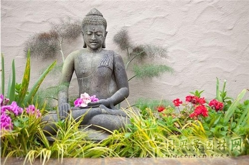 東方式花園里的佛像