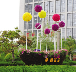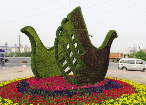 為給廣大市民呈現一個精彩無限的鮮花盛宴,山東濱州經濟開發區投資近200萬元在轄區重點路段、重點部位擺設了四組設計新穎、內涵深刻、現代氣息濃郁的大型植物雕塑,既美化了城市,又為游人增添了情趣。